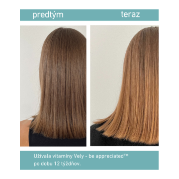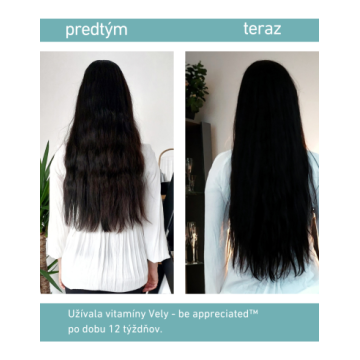 Formula Vely be appreciated™ vyvinutá farmaceutmi – pre tvoje silné vlasy a podporu sebaistoty. Komplex 13 šťavnatých vitamínov, minerálov a antioxidantov.